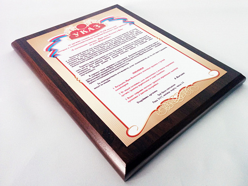 Чаще всего заказывают изготовление плакетки размером А4, хотя под заказ можно изготовить плакетки и А5 и А3. Заказать изготовление плакеток по хорошей цене можно в нашей типографии.